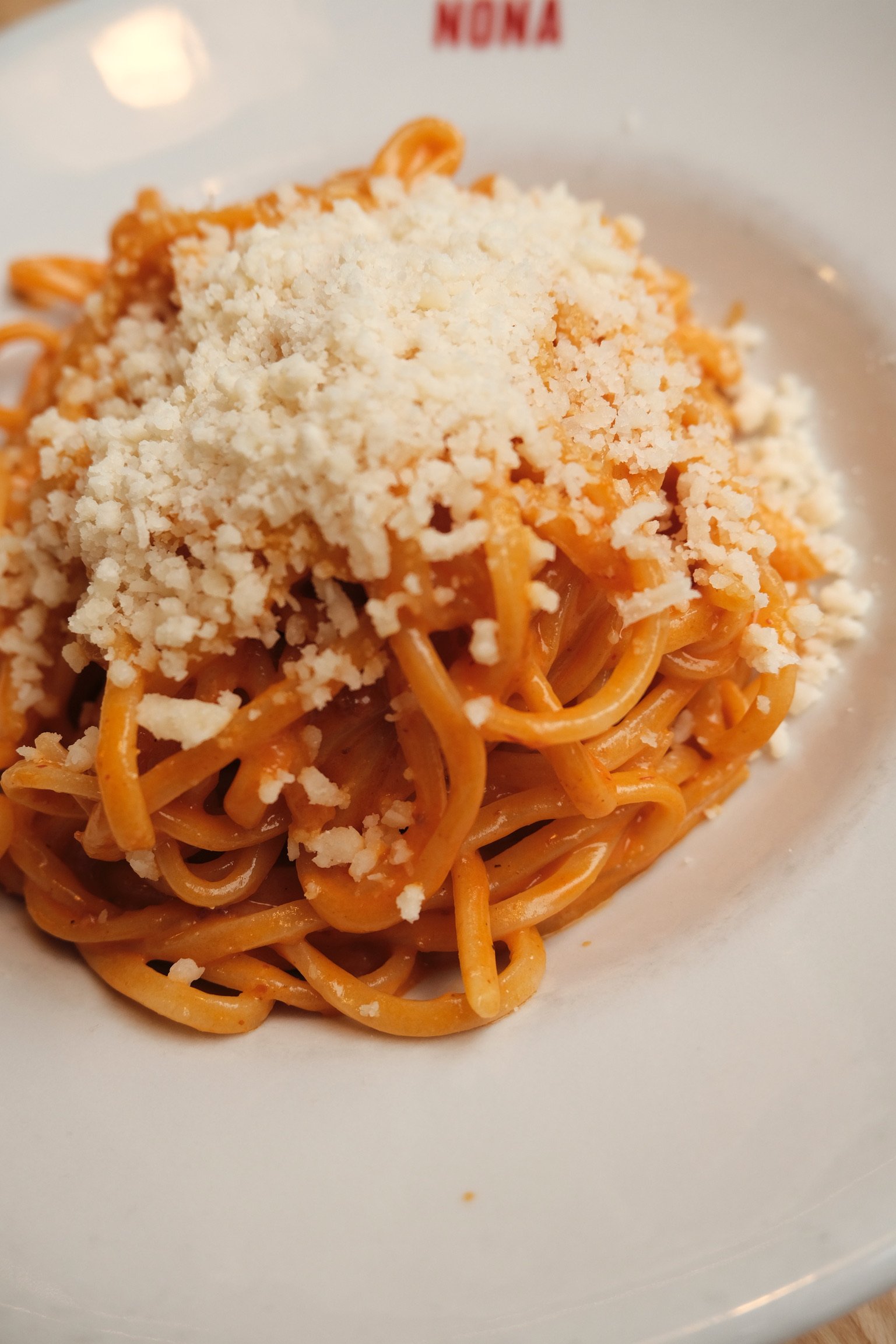 SPAGHETTI ALLA CHITARRA with ‘Nduja (spicy spreadable pork sausage), lemon, and Parmigiano Reggiano